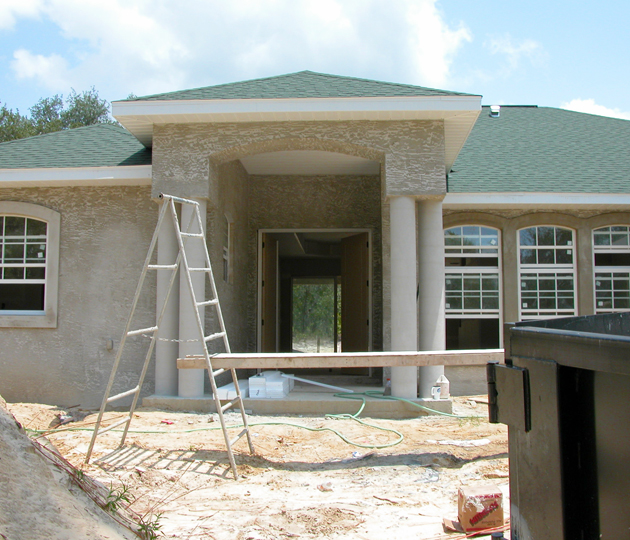 Exterior Entrance View. Drywall & Stucco Completed: August 6, 2007.