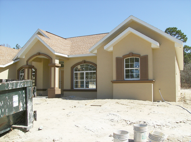 Drywall & Stucco Completed. Exterior Front View: February 15, 2008.