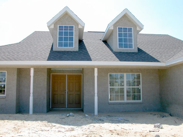 Drywall & Stucco Completed, Front Exterior Entrance View: March 12, 2007.