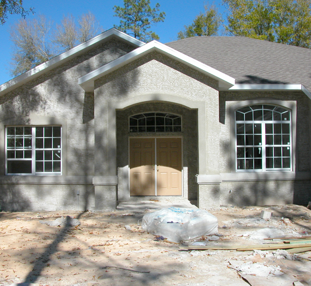 Drywall & Stucco Completed. Exterior Front Entrance View: February 20, 2007.