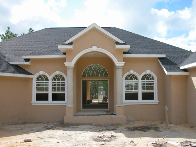 Drywall & Stucco Completed. Exterior Entrance View: October 8, 2007.