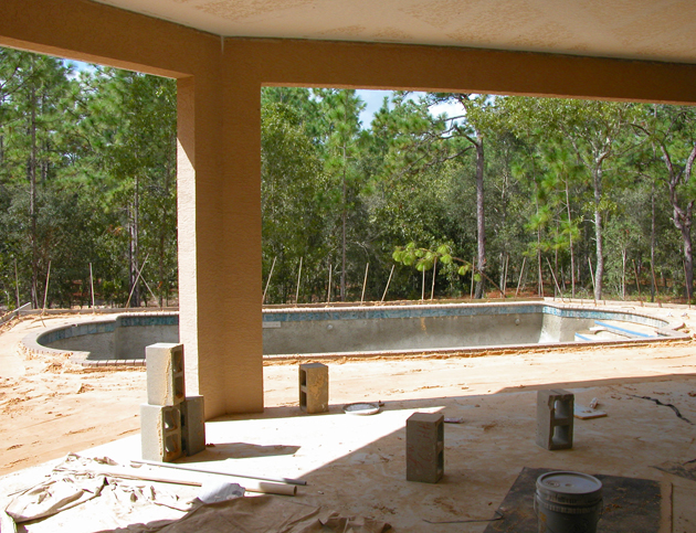 Drywall & Stucco Completed. Exterior Pool View: October 8, 2007.