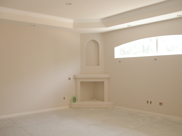Drywall & Stucco Completed. Interior Fireplace View: October 8, 2007.