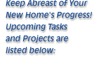 SanderSon Bay Fine Homes presents the schedule of tasks and projects below. Dates are best guesses as various tasks rely opon inspections, permits, materials, etc. which are beyond our control. We will continue to update this schedule as we know of changes.