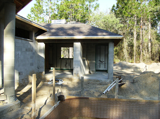 Windows In, ALL Trades Inspection Scheduled. Exterior Pool View: April 2, 2008.