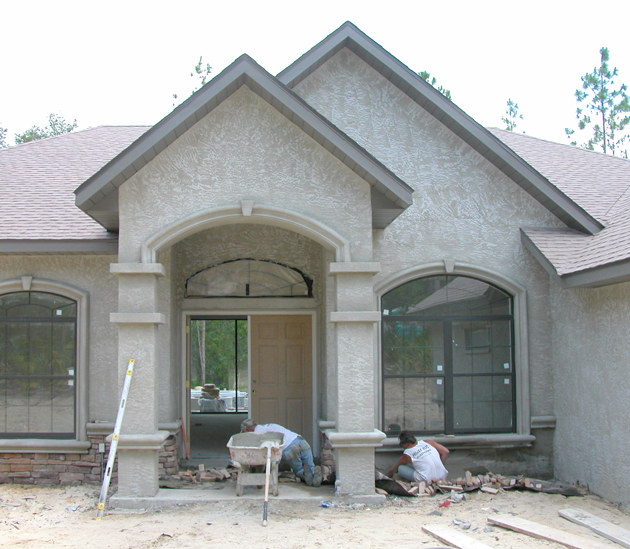 Drywall & Stucco Completed. Front Exterior Entrance View: May 24, 2007.