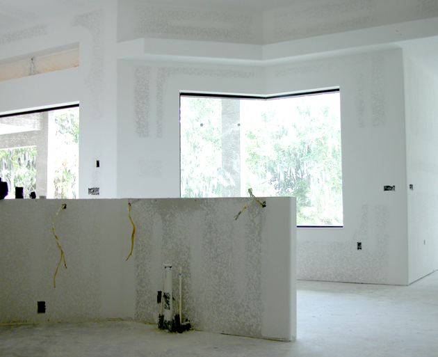 Drywall & Stucco Completed. Interior Kitchen View: July 11, 2007.
